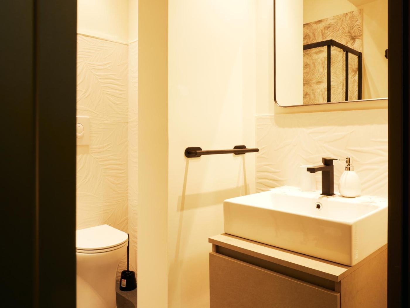 Double Room with Private Bathroom. Featuring free toiletries, this double room includes a private bathroom with a shower, a bidet and a hairdryer. The double room features air conditioning, a tea and coffee maker, a wardrobe, a safe deposit box, as well as a flat-screen TV. The unit has 1 bed.