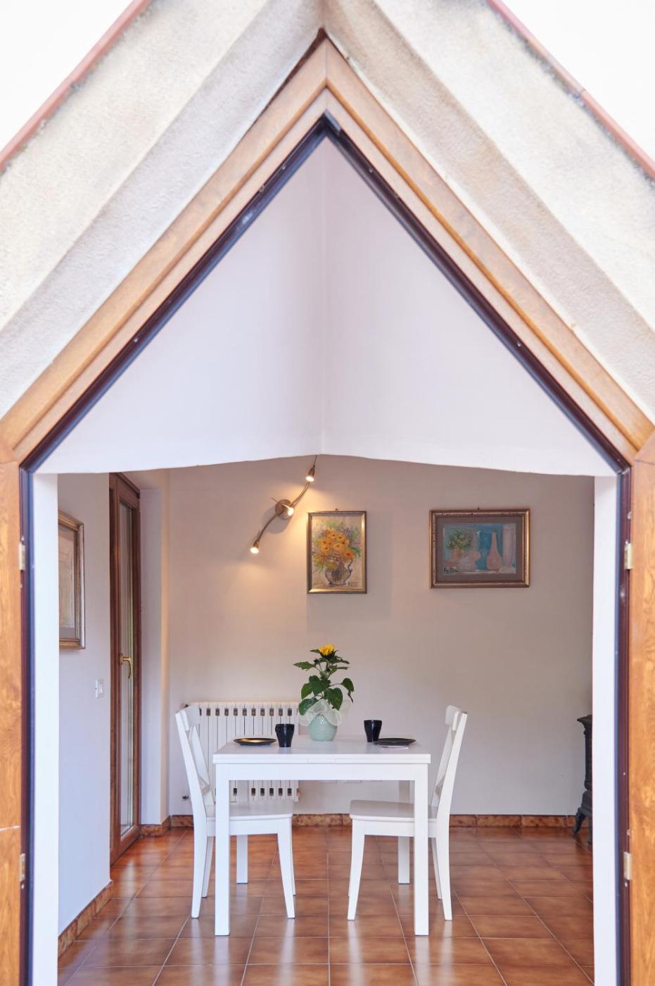 One-Bedroom House. This holiday home features a fireplace. Boasting a private entrance, this holiday home features 1 living room, 1 separate bedroom and 1 bathroom with a bath and a bidet. Guests can make meals in the kitchen that has a stovetop, a refrigerator, kitchenware and an oven. Featuring a terrace with garden views, this holiday home also features a washing machine and a flat-screen TV. The unit has 2 beds. ;