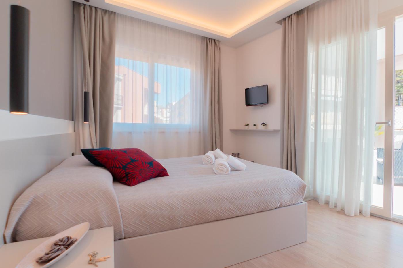 Deluxe Double Room with Balcony. The double room provides air conditioning, a private entrance, a terrace with mountain views as well as a private bathroom featuring a walk-in shower. The unit offers 1 bed. ;
