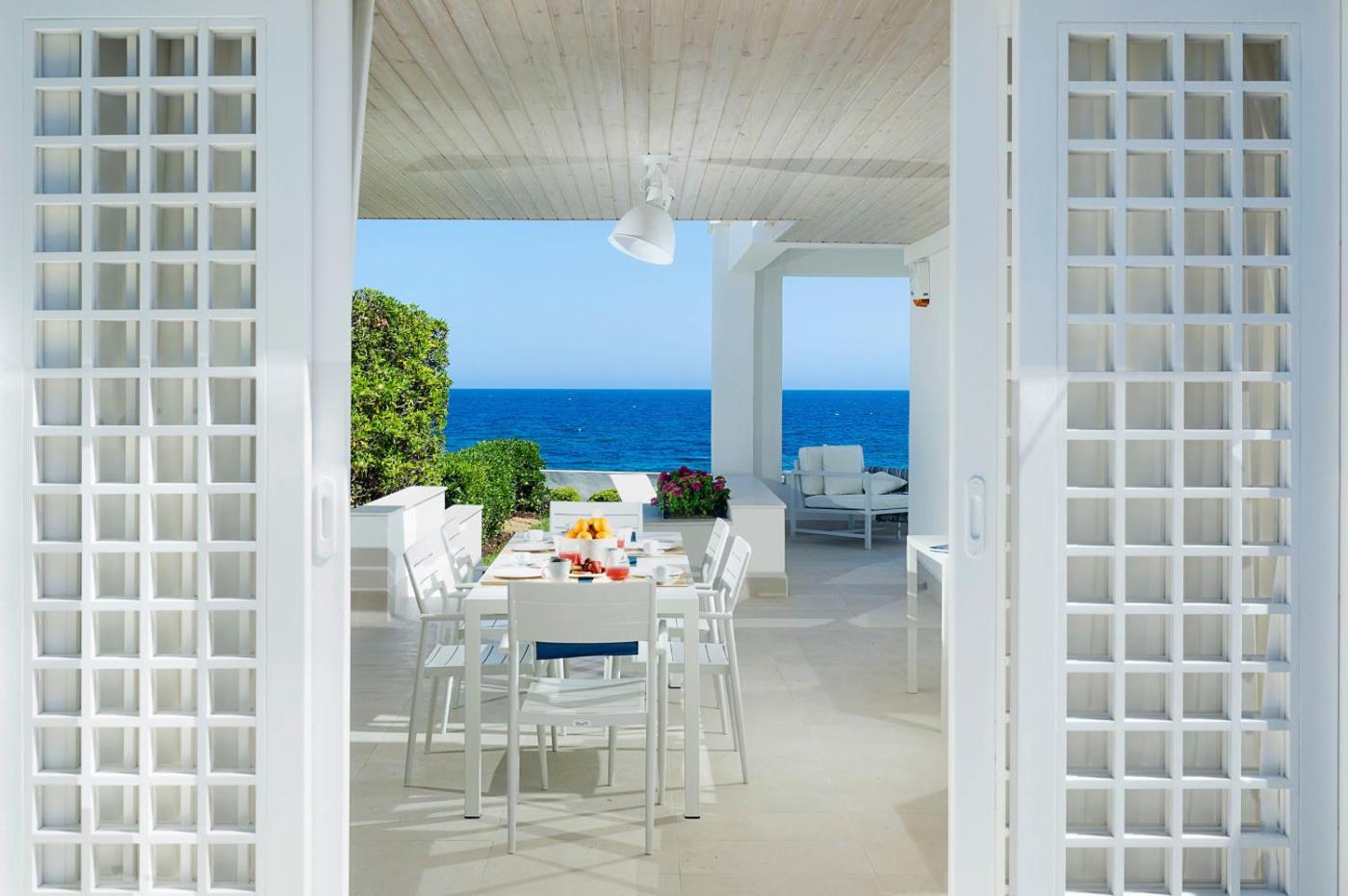 Villa - Beach Front. The air-conditioned villa features 2 bedrooms and 1 bathroom with a shower and a hairdryer. Guests will find a stovetop, a refrigerator, a dishwasher and kitchenware in the well-equipped kitchen. The villa also provides guests with a barbecue. Featuring a terrace with sea views, this villa also provides a washing machine and a TV with satellite channels. The unit offers 2 beds.