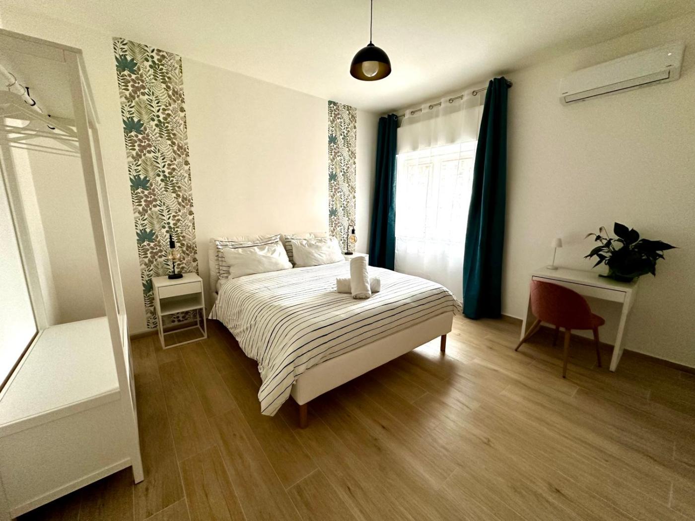 Two-Bedroom House. The air-conditioned holiday home has 2 bedrooms and 1 bathroom with a shower and a bidet. In the kitchen, guests will find a stovetop, a refrigerator, kitchenware and an oven. Boasting a balcony with a quiet street view, this holiday home also offers a coffee machine and a flat-screen TV. The unit has 4 beds.