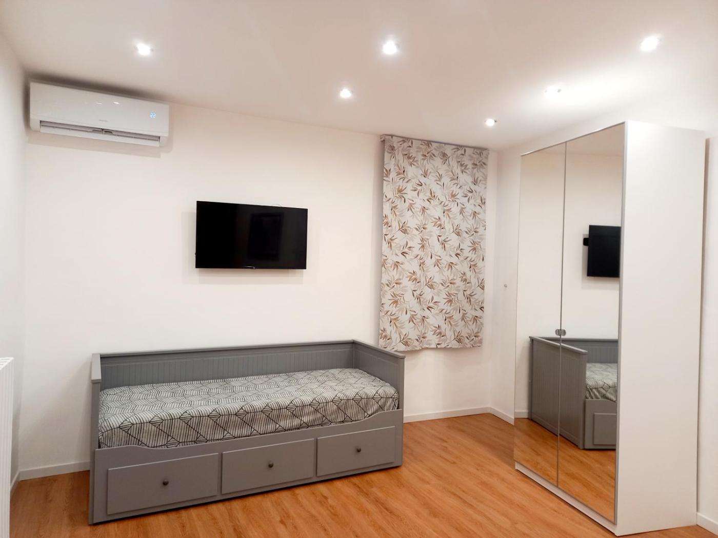 Holiday Home. Featuring a private entrance, this air-conditioned holiday home consists of 1 living room, 1 separate bedroom and 1 bathroom with a walk-in shower and a bidet. Guests can make meals in the kitchen that is equipped with a stovetop, a refrigerator, kitchenware and an oven. This holiday home features soundproof walls, a tea and coffee maker, flat-screen TV with cable channels, as well as chocolate for guests. The unit offers 3 beds.