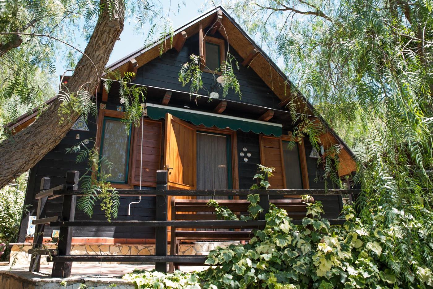 The chalet with a terrace and garden views has 1 bedroom, a living room, a flat-screen TV, an equipped kitchen with an oven and a microwave, and 1 bathroom with a bidet. Towels and bed linen are offered in the chalet. The property has an outdoor dining area.