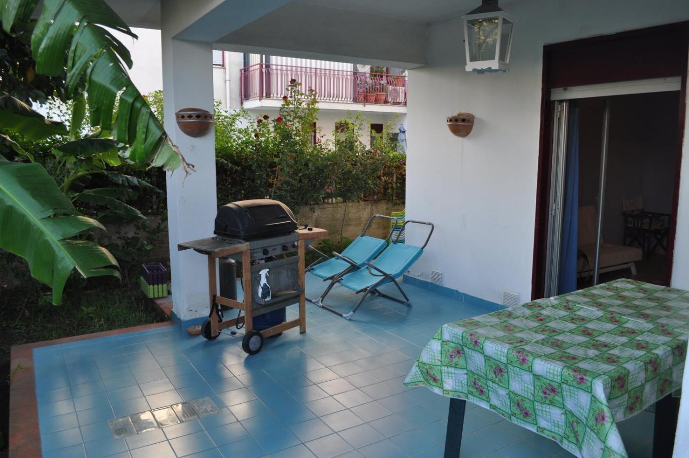 Two-Bedroom House. Boasting a private entrance, this holiday home includes 1 living room, 2 separate bedrooms and 1 bathroom with a shower and a bidet. Guests will find a stovetop, a refrigerator, kitchenware and an oven in the fully equipped kitchen. The holiday home also features a barbecue. Featuring a terrace with garden views, this holiday home also offers a washing machine and a flat-screen TV. The unit has 3 beds.